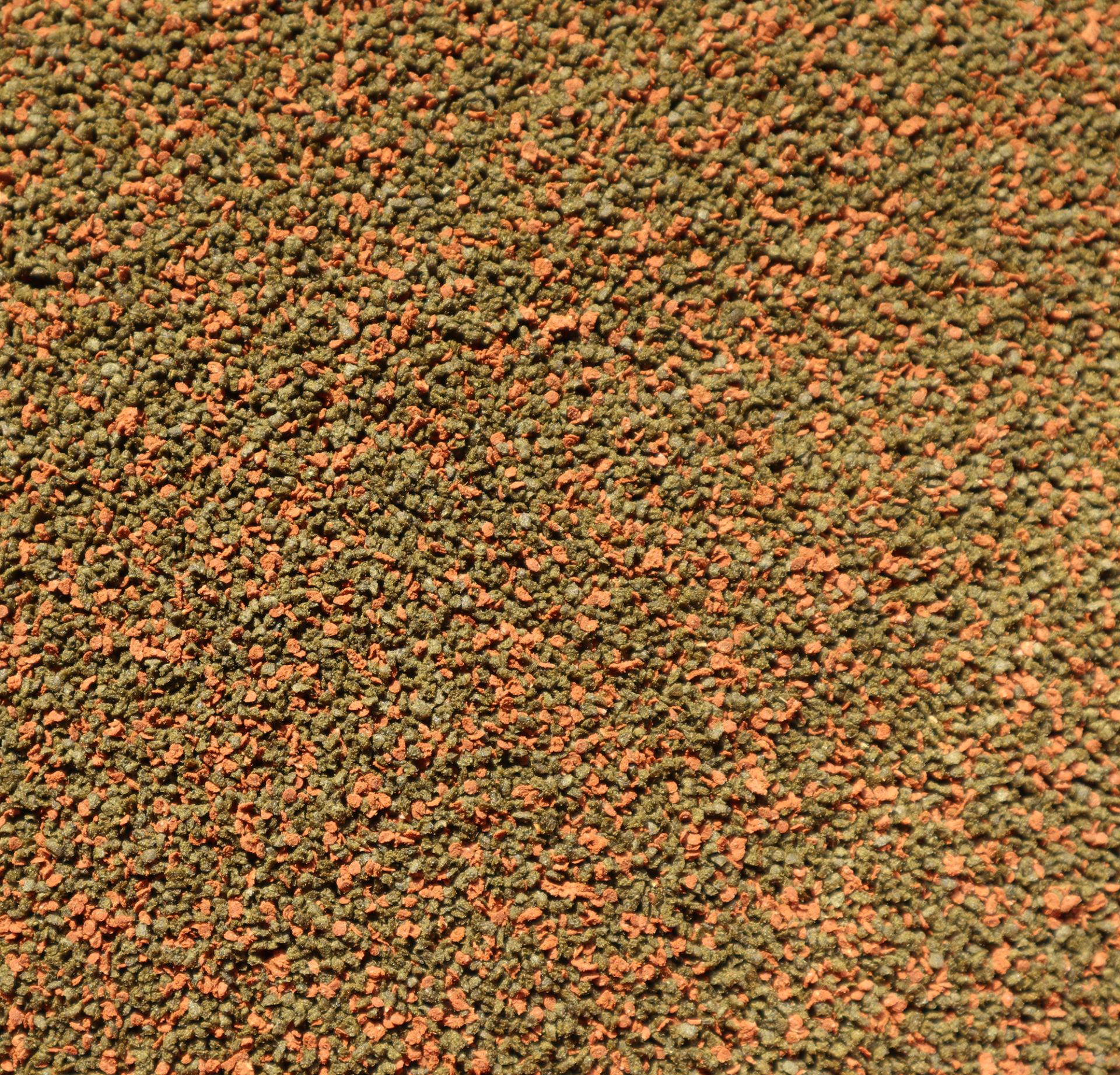 O granulado red é produzido à base de proteinas e enriquecido com ácidos gordos e algas ricas em carotenoides que ajudam na acentuação das cores devido à presença de astaxantina (corante natural).