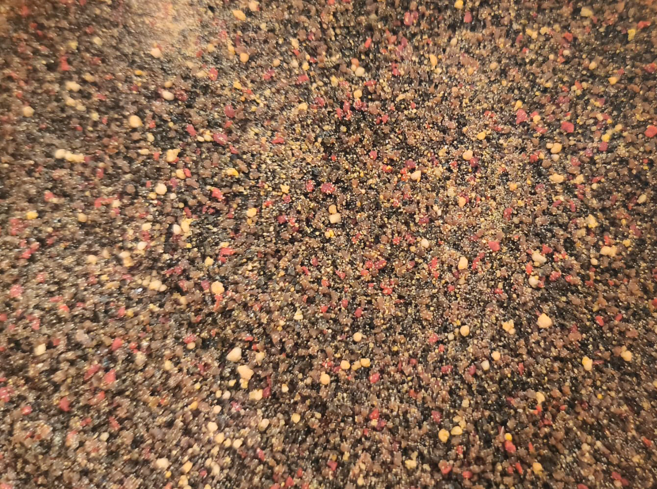 O granulado red é produzido à base de proteínas e enriquecido com ácidos gordos e algas ricas em carotenoides que ajudam na acentuação das cores devido à presença de astaxantina (corante natural).